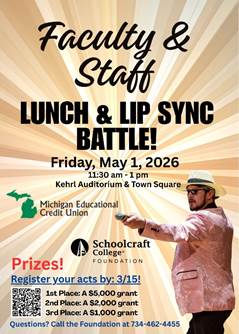 Questions? Please contact Lisa Meinzinger at ext.4698 or email labraham@schoolcraft.edu